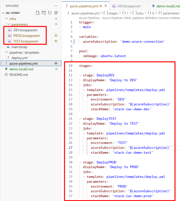 Now one step before we can add TEST and PROD is making sure everything is parameterized.